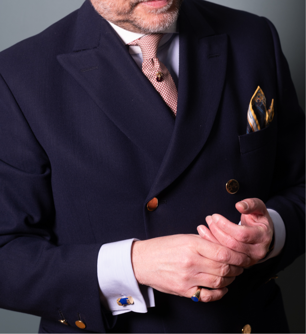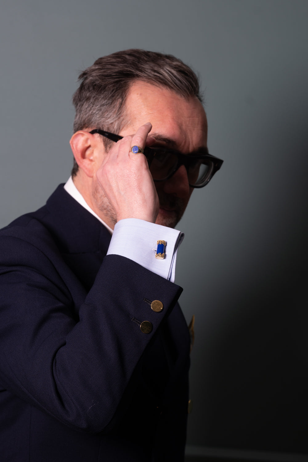Grandeur and organic beauty combine in these luxe cufflinks by Kutchinsky, crafted with 18ct yellow gold and lapis lazuli barrels. Each link is finished with an organic texture and ornate swivel fittings to create a classic accessory with a timeless charm. Signed Kutchinsky, these cufflinks reflect an exclusive and elegant taste.