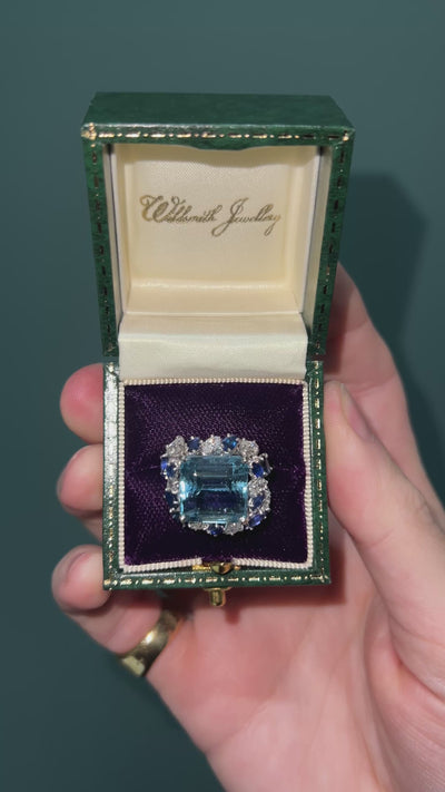 Vintage Aquamarine, Sapphire & Diamond Cocktail Ring