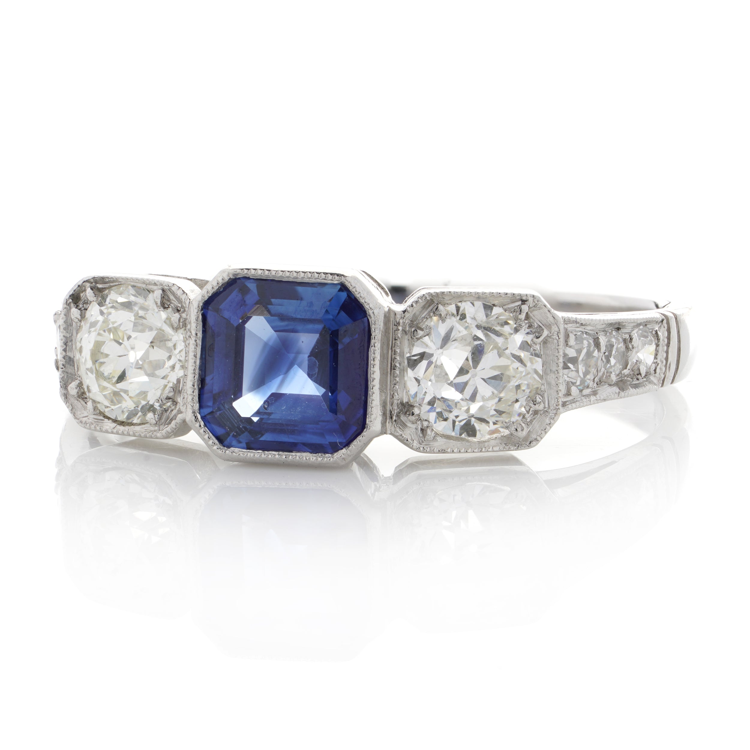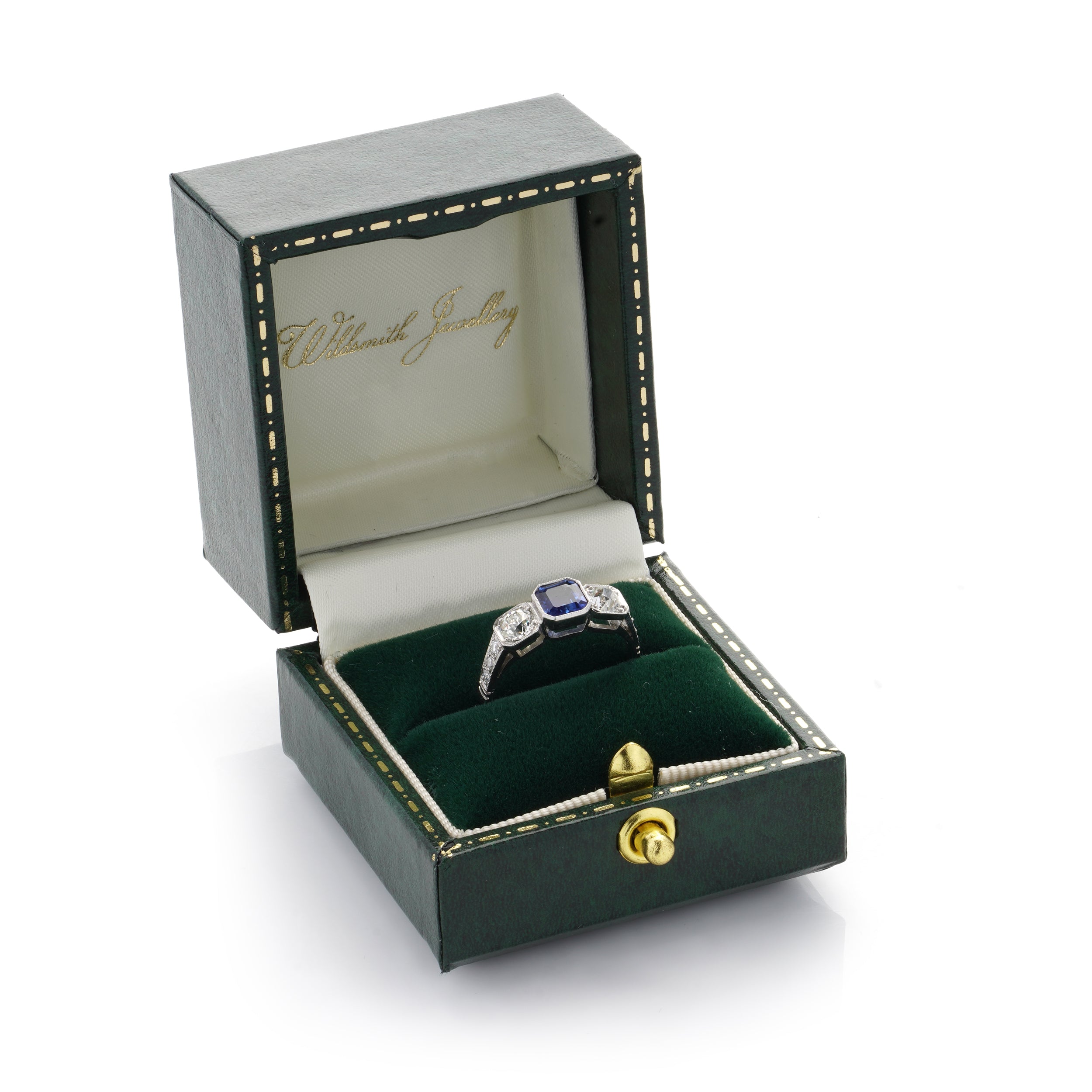 Art Deco Style Sapphire & Old Cut Diamond Ring - Wildsmith Jewellery