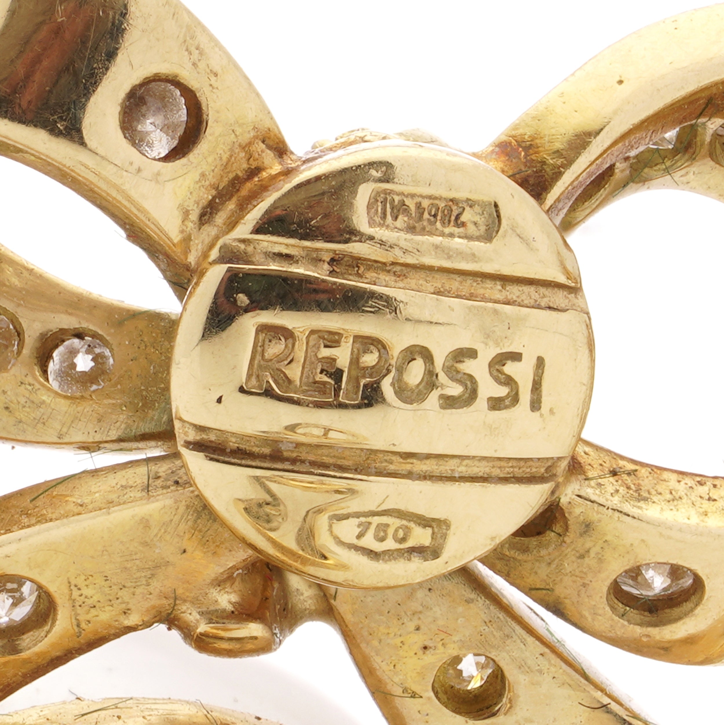 - Hallmark: Repossi 750 and Italian makers mark to the back of the earring - French eagle head to the sprung clip fittings.
